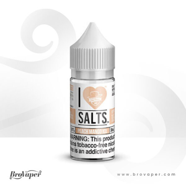 Peach Mango Ice by I Love Salts is a mouth-watering concoction of uplifting menthol, luscious peaches, and tropical mango. from the Mad Hatter Juice producers.